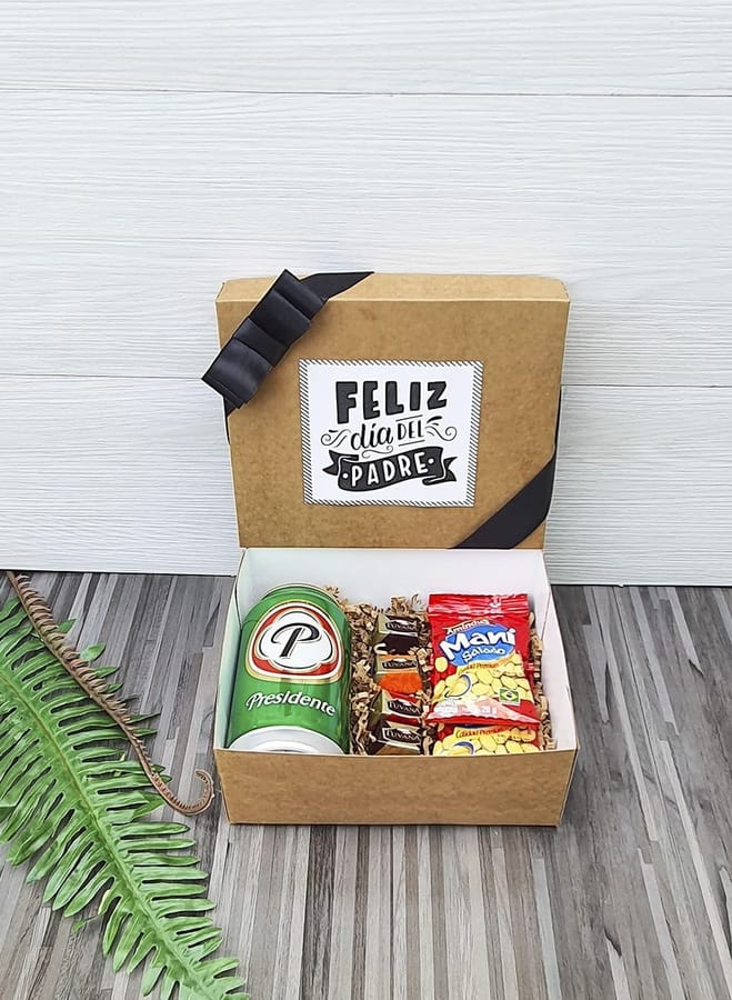 Incluye una refrescante lata de cerveza Presidente, dos paquetes de maní salado y cinco deliciosos chocolates. ¡Un regalo perfecto para disfrutar y consentir a papá en su día especial!